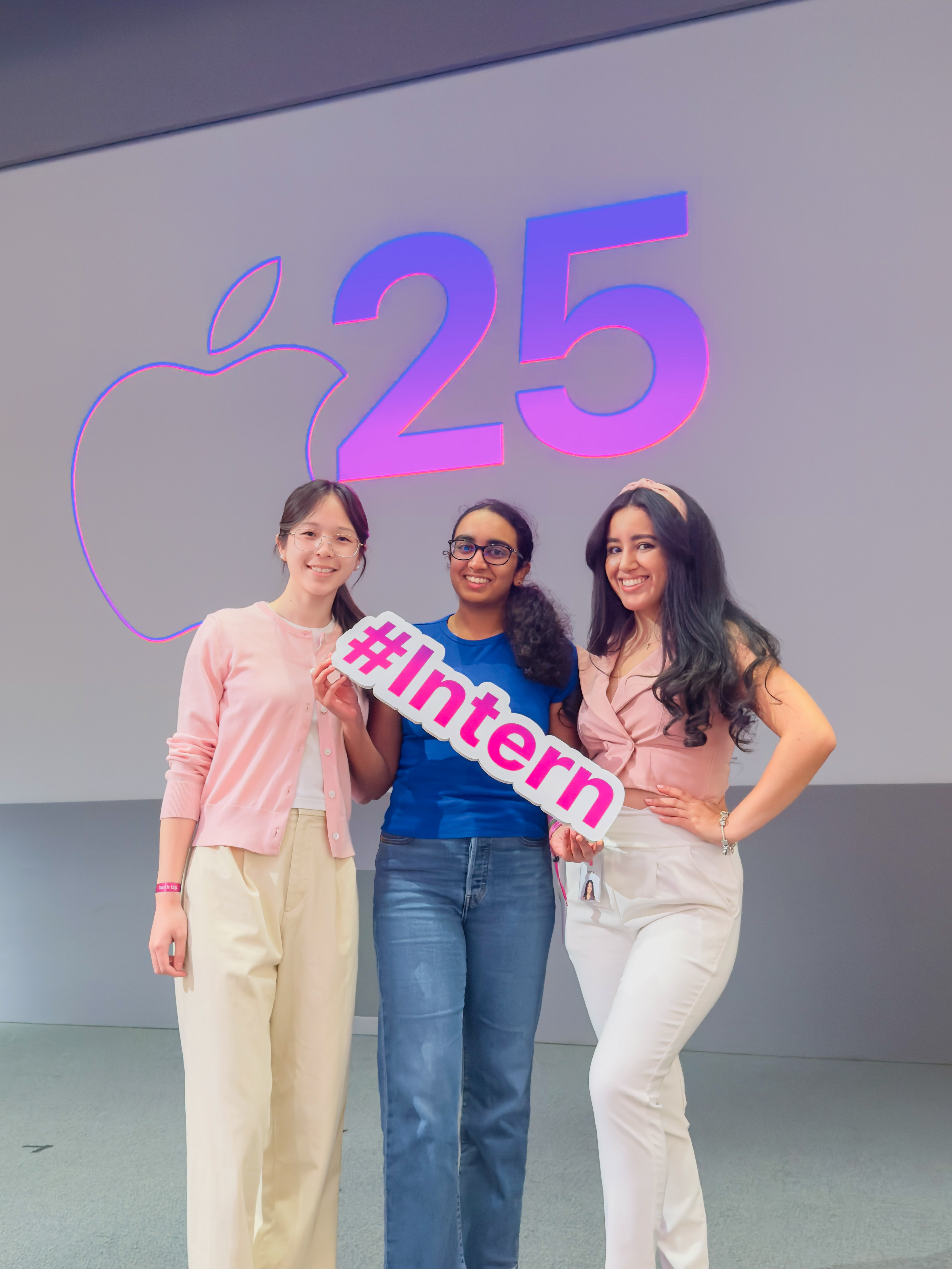 Amid the chaos, I still had reasons to be optimistic. On the first day at Apple, I was assigned a conference room to work, which I'd be sharing with two other interns for the summer. Though I usually prefer having my own space to work, this conference room was the best thing that happened the whole summer. My conference-mates and I clicked instantly, and our silly conversations eventually became a source of relief throughout the summer during long working days. Along with sharing inside jokes and laughing at random things we found funny, we also established a routine of taking short walks around the campus to chat and decompress.